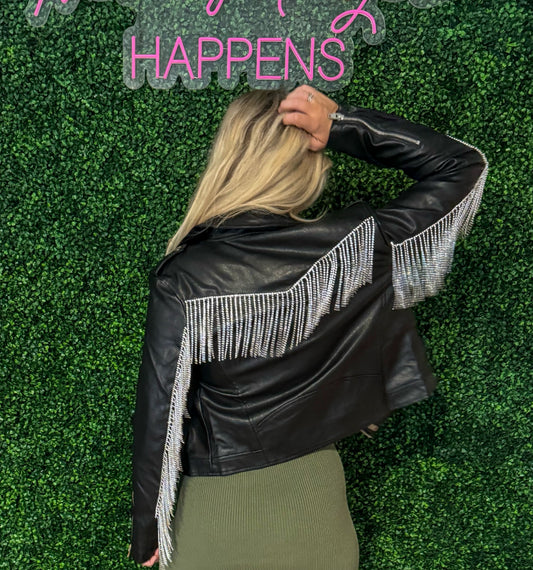Nash Rhinestone Faux Leather Moto Jacket