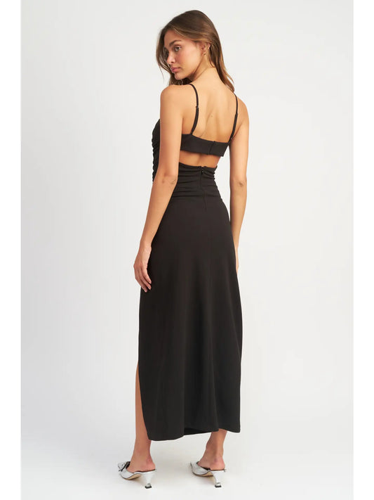 Harper Side Ruched Midi Dress with Spaghetti Straps