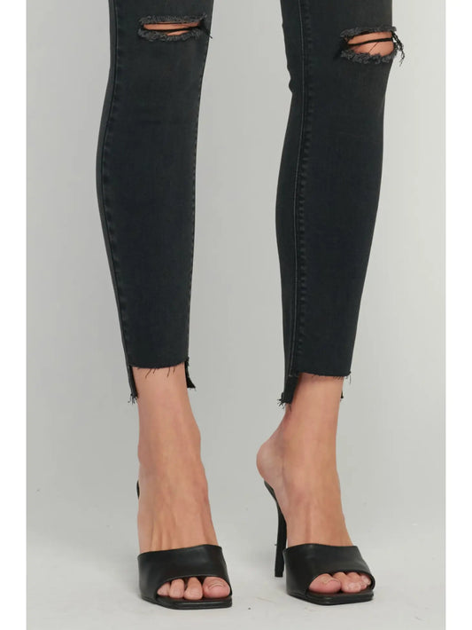 Amelia Black Step Hem Knee Slit High Rise Skinny